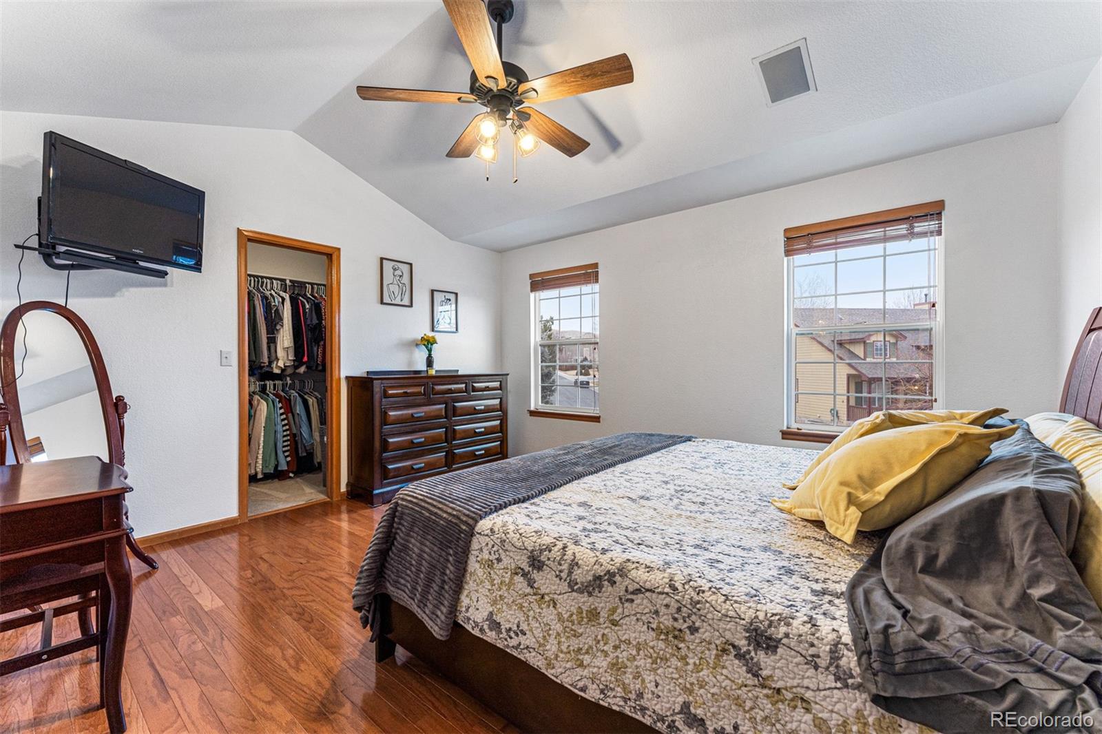 Situated in desirable Green Mountain, this updated two-story home is located on one of the largest lots in the neighborhood, offering stunning mountain and sunset views. The spacious main floor features vaulted ceilings, gleaming wood floors, a family room with a cozy fireplace, plantation shutters, and formal dining and living rooms. You'll love the sun-kissed and fully renovated kitchen including granite counters, stainless steel appliances, a gas cooktop with a hood, a pantry, and a breakfast nook. From the kitchen, you can move effortlessly out to the low-maintenance composite deck to savor the picturesque views and sunsets while dining alfresco. Retreat upstairs to the spacious primary bedroom with a vaulted ceiling, ensuite five-piece bath with double sinks, and a walk-in closet. Completing the second floor are two additional bedrooms plus a flex-space loft. Don't miss the walkout basement filled with natural light as it is the perfect space for entertaining guests in the recreation room, family room, and kitchen along with a fourth bedroom and bathroom. Unwind in the expansive backyard that offers plenty of space for outdoor recreation and gardening. Fully fenced-in for privacy, it's the perfect yard for playtime and for pets to roam free. Recent updates include a new furnace, A/C unit, water heater, and new solar panels on the roof. Located in the coveted neighborhood of Summit Glen in Green Mountain, you will love the spectacular views from almost every window! Enjoy everything that Colorado has to offer right outside your door: community park, Green Mountain for a variety of trails, Red Rocks, Bear Creek Lake, plus easy access to the mountains and downtown via C-470 or US 285. Welcome home!